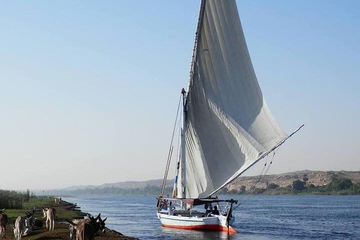 Take a break from sightseeing and enjoy a leisurely ride along the Nile River. Climb aboard an Egyptian felucca boat and sail to Banana and Camel islands for swimming and a camel ride. While you’re sailing, tuck into a delicious local lunch served with soft and hot drinks. This is a private tour for only you and your party, providing a more personalized experience.